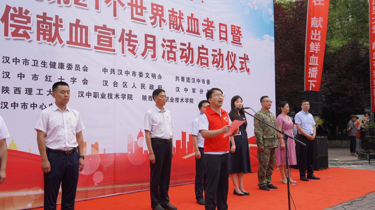 为积极响应团省委的号召,充分发挥团员青年突击队和生力军的作用,鼓励动员更多青年群体参与到无偿献血的崇高事业中奉献“热血”,传递爱心。6月13日上午,团市委联合市卫健委、市委文明办、市红十字会、汉中军分区、汉台区政府在中心广场共同举办汉中市庆祝第21个世界献血者日活动暨2024年无偿献血宣传月活动启动仪式,来自陕西理工大学、国家税务总局汉中市税务局、陕建十建集团、中国移动汉中分公司等百余名团员青年参加活动。