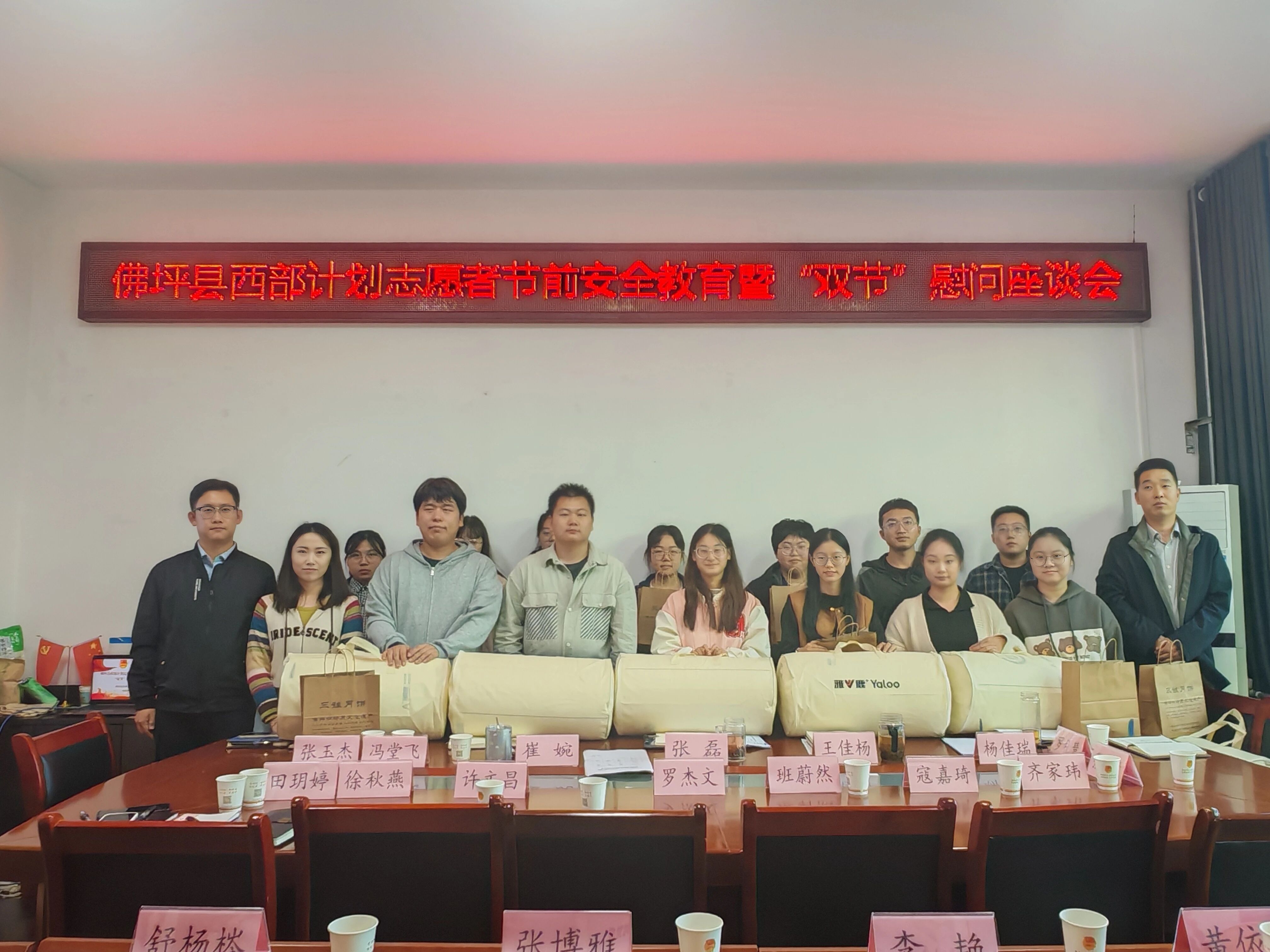 9月23日,团佛坪县委、佛坪县项目办召开西部计划志愿者节前安全教育暨“双节”慰问座谈会。会上,学习了习近平总书记关于青年工作的重要思想、习近平总书记给谢依特小学戍边支教西部计划志愿者服务队队员回信精神、《陕西省大学生志愿服务西部计划志愿者管理办法(试行)》《志愿者“七个严禁”》。随后,全体志愿者围绕工作开展、学习成长、生活保障等方面交流发言,县项目办对志愿者关心的问题逐一作出解答并发放慰问品。